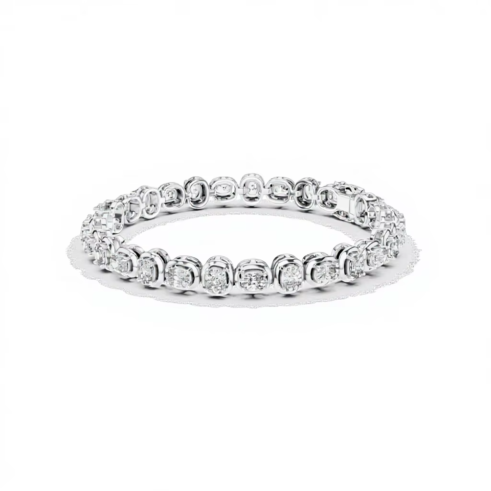 กำไลข้อมือเพชรเพาะเลี้ยงในห้องปฏิบัติการแบบพิเศษ พร้อมตัวล็อคสองชั้น ทองคำขาว 18 กะรัต ชุบโรเดียม รับรองคุณภาพ เหมาะสำหรับเป็นของขวัญในงานปาร์ตี้