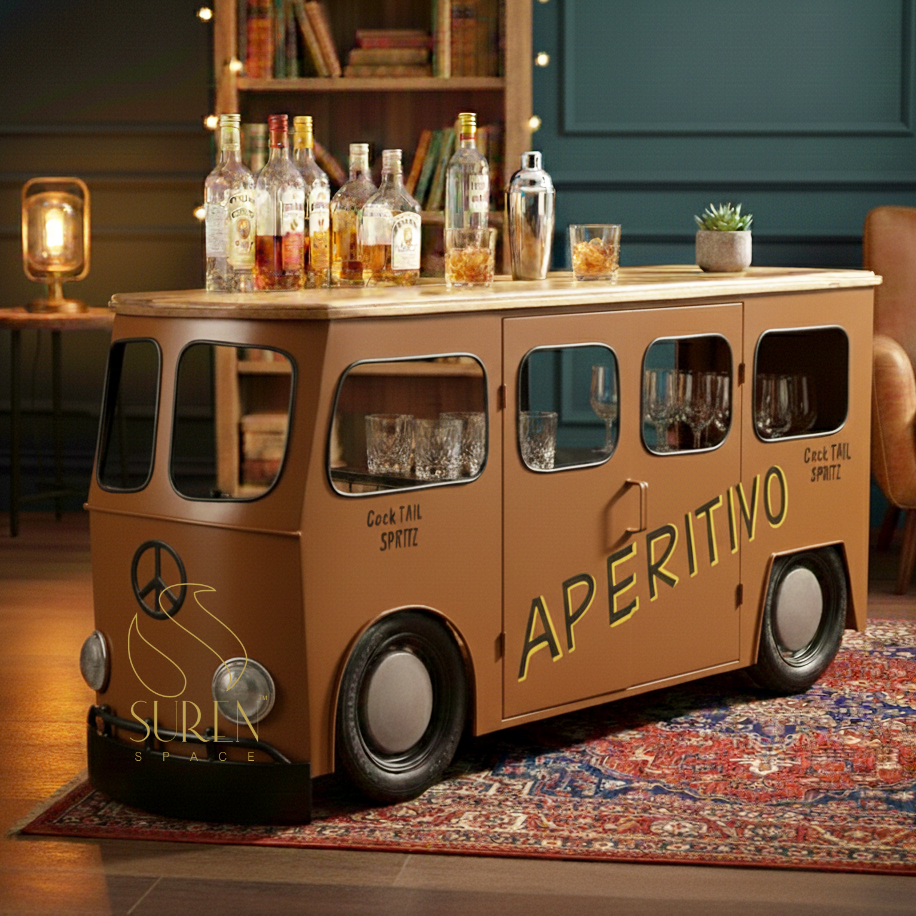 ดีไซน์บาร์ในบ้านแบบโมเดิร์นสุดพิเศษ 3 ช่อง ทำจากเหล็กและไม้มะม่วงแท้