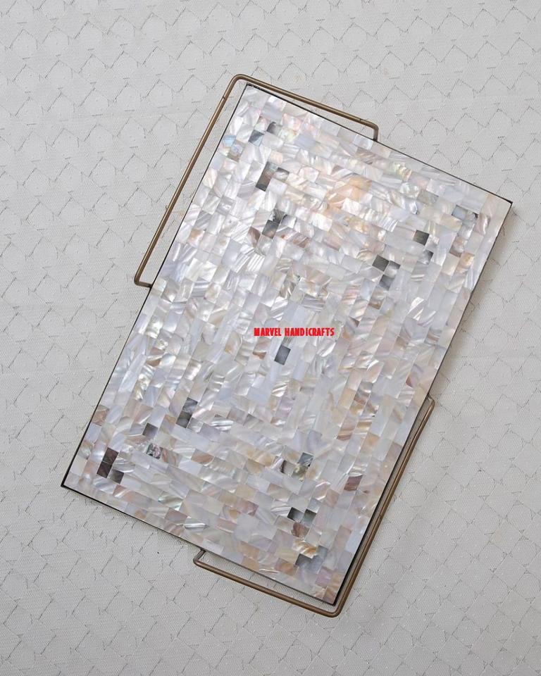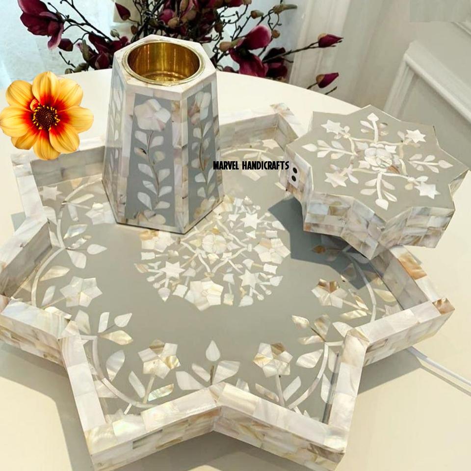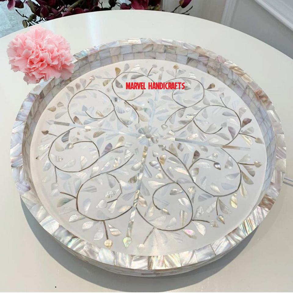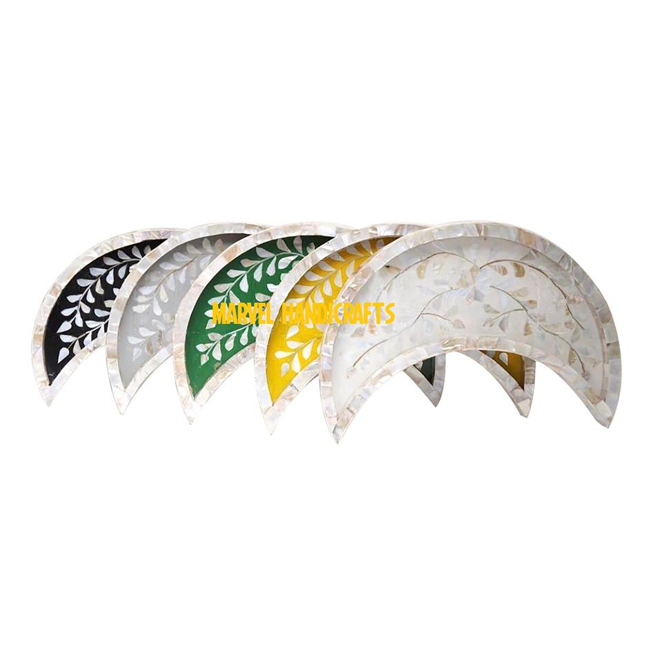 ถาดงานหัตถกรรมไม้แม่มุกรูปพระจันทร์สำหรับตกแต่งบ้านถาดเครื่องครัวถาดอาหรับ