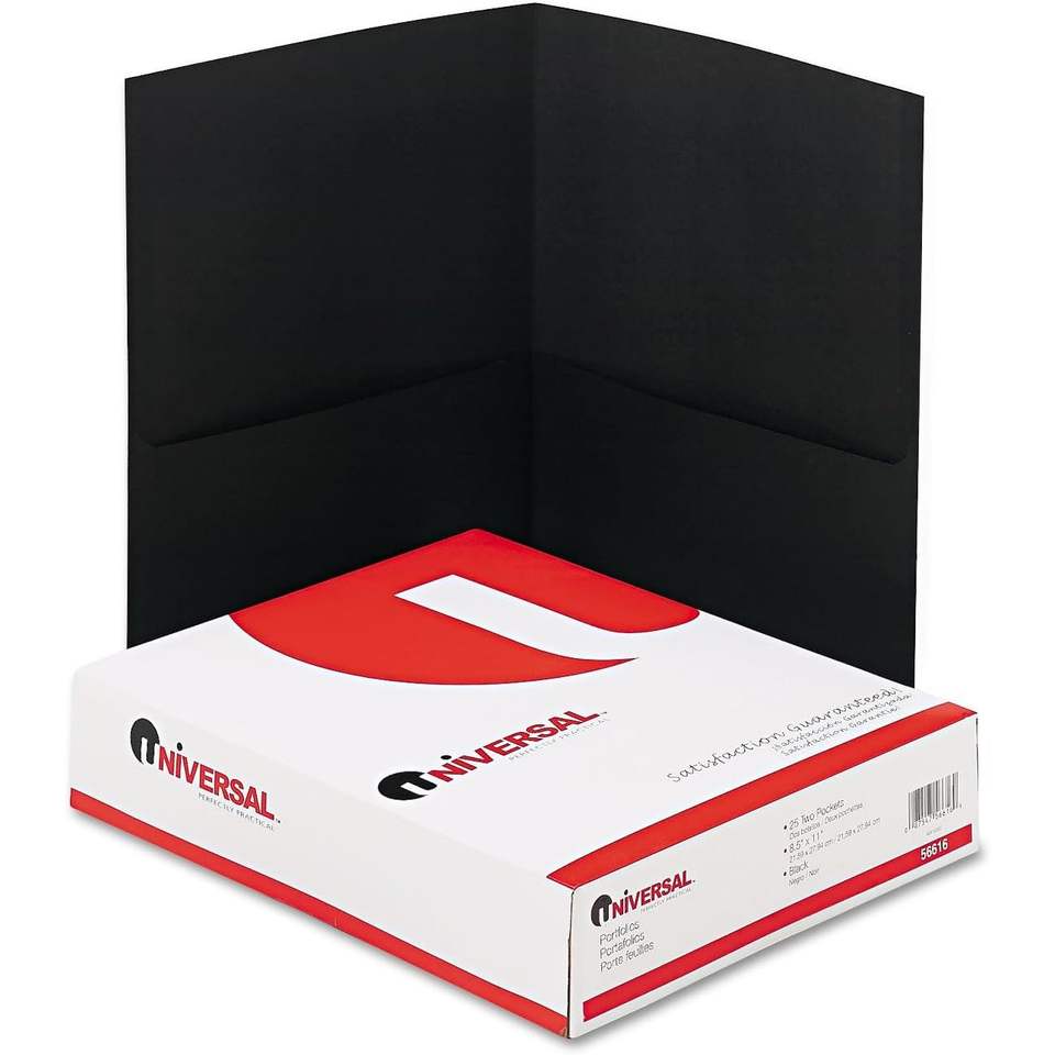 UNVN56616 B004E2PTCY ยูนิเวอร์แซล 11 นิ้ว เอ็กซ์ 8.5 นิ้ว แฟ้มหนังลายนูน 2 ช่อง สีดำ บรรจุ 25 ชิ้น/กล่อง อุปกรณ์เสริมสำหรับแฟ้มเอกสาร