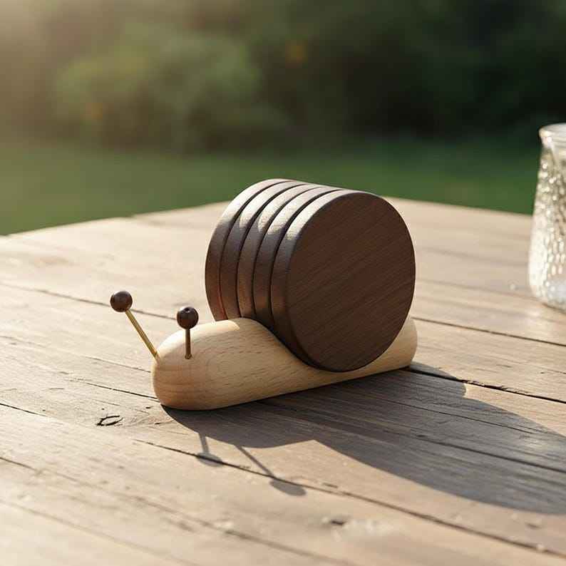 ชุดจานรองแก้วไม้ทำมือคุณภาพพรีเมียมจาก UO ดีไซน์ลายธรรมชาติ เหมาะสำหรับตกแต่งโต๊ะอาหารอย่างสวยงาม รูปทรงหอยทาก