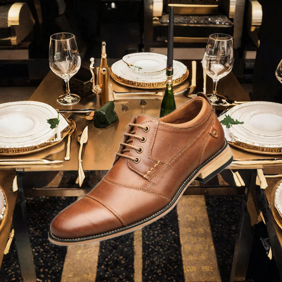 รองเท้าผู้ชายปักสบายผูกเชือกรองเท้าคลาสสิกหนังแท้ BR 33278สีดำ