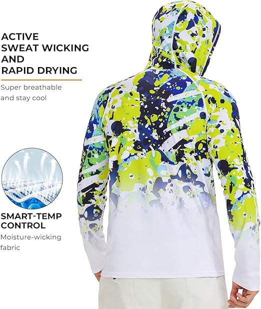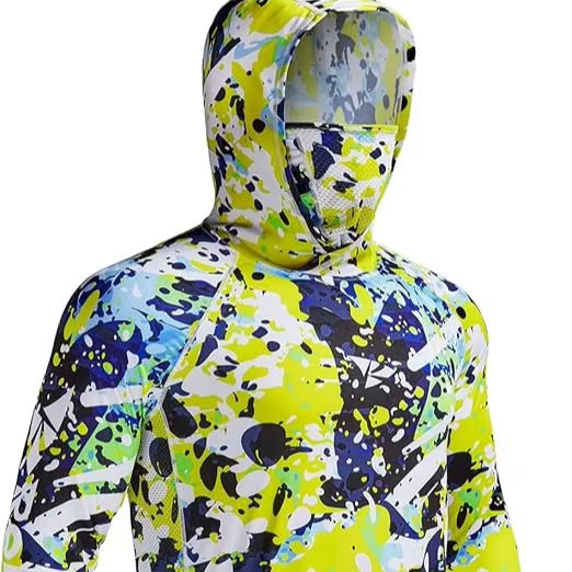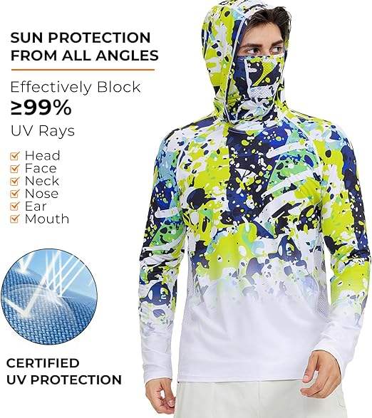 เสื้อเชิ้ตเดินป่าสำหรับผู้ชายแขนยาว UPF 50+ พร้อมหน้ากากป้องกันรังสียูวีและฮู้ดคลุมคอ