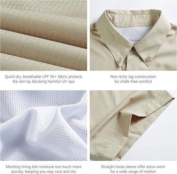 UPF 50 Men’s Top Quality Fishing Dress Shirt Button Down Woven Short Sleeve Outdoor