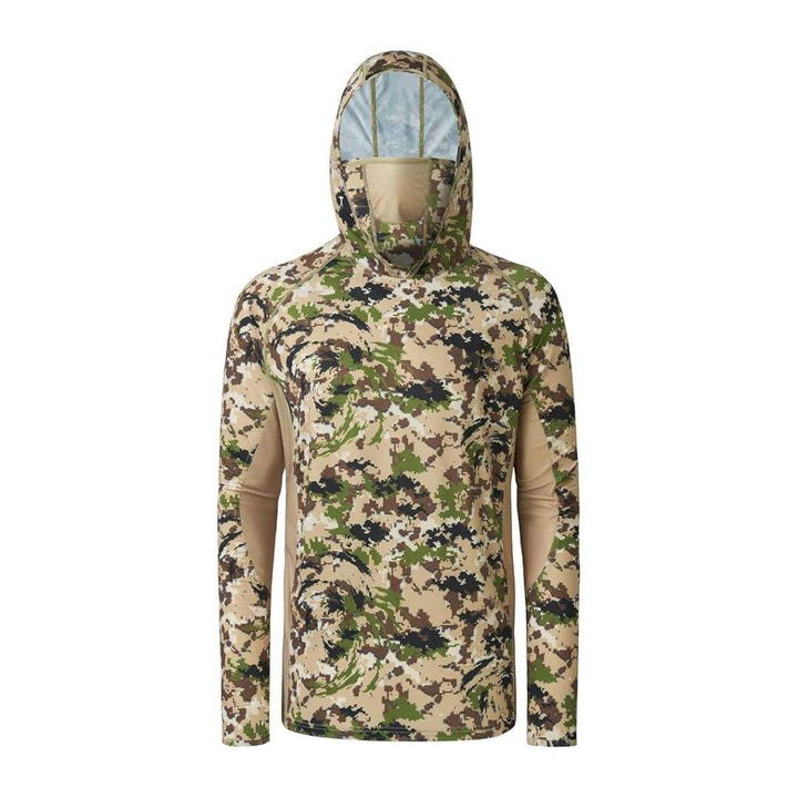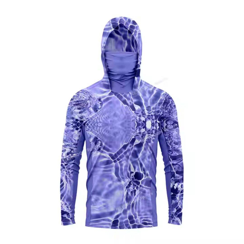 UPF50 + เสื้อเชิ้ตแขนยาวสำหรับผู้ชายผ้าโพลีเอสเตอร์ซับเหงื่อระบายอากาศได้ดีเสื้อตกปลาพร้อมฮู้ด