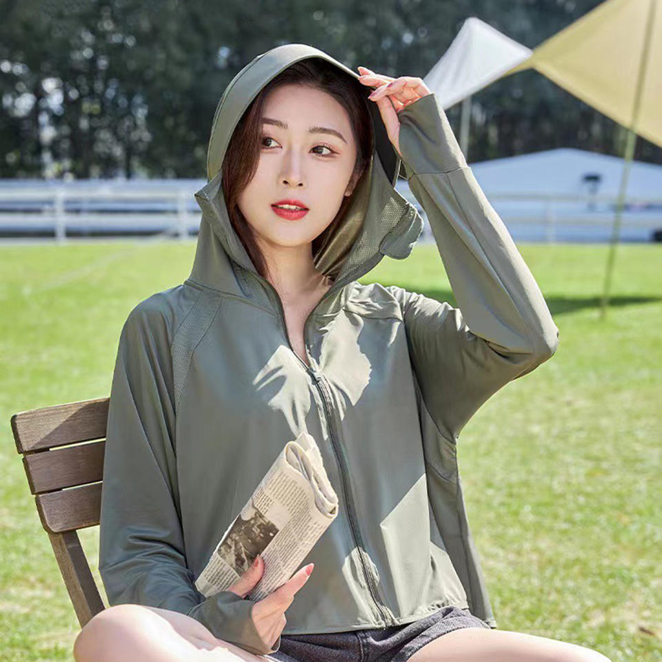 UPF50เสื้อผ้าผู้หญิงกันแสง UV เสื้อกันแดดแขนยาวเดินป่ากลางแจ้งจักรยานตกปลาเสื้อป้องกันผื่นฤดูร้อน