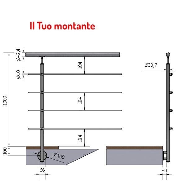 ที่ยึดด้านตรงสมาชิกภายนอกสำหรับราวบันไดและราวบันไดซาติน Aisi 304สแตนเลส Ø ความสูง33.7 1.00เมตร