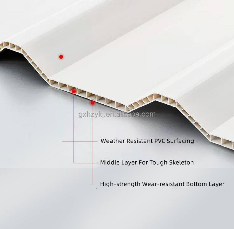แผ่นหลังคาลูกฟูก UPVC หนา 10 มม. แผ่นหลังคาแซนวิช PVC แบบสองชั้น แผ่นหลังคา PVC สำหรับคลังสินค้ากลางแจ้ง