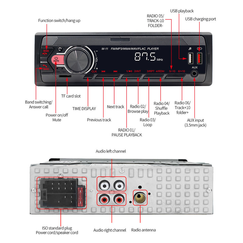 (สินค้าสหรัฐอเมริกา/ยุโรป) เครื่องเล่น MP3 ในรถยนต์ Podofo วิทยุติดรถยนต์ สำหรับรถยนต์ รองรับบลูทูธ FM Aux-in รับสัญญาณ SD USB MP3 MMC WMA พอร์ต ISO