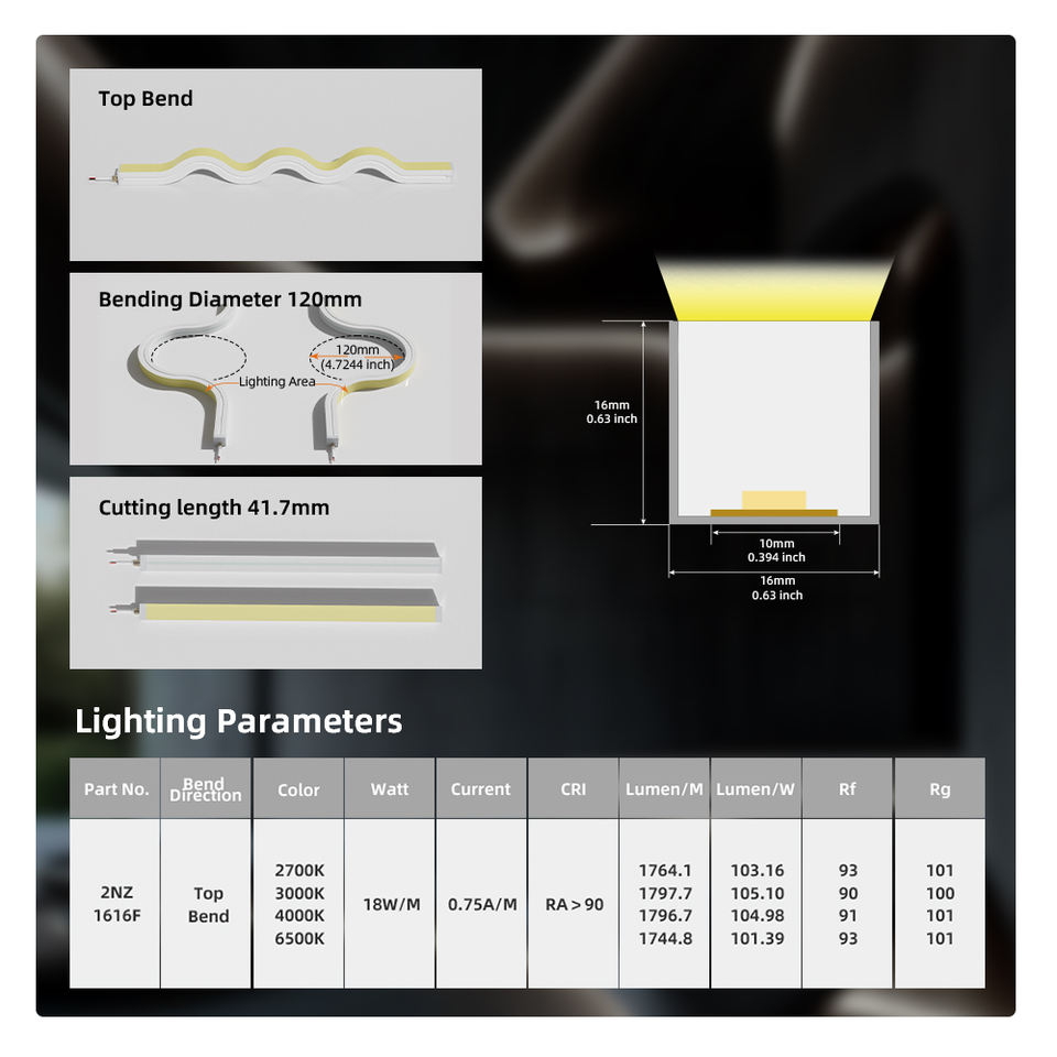 ไฟนีออนแบบโค้งงอได้ ประหยัดพลังงาน ได้รับการรับรองมาตรฐาน UL CE ขายดีในตลาดสหรัฐฯ - 100LM/W ขนาด 16*16 มม. รัศมีการโค้งงอ 50000H อายุการใช้งานยาวนาน