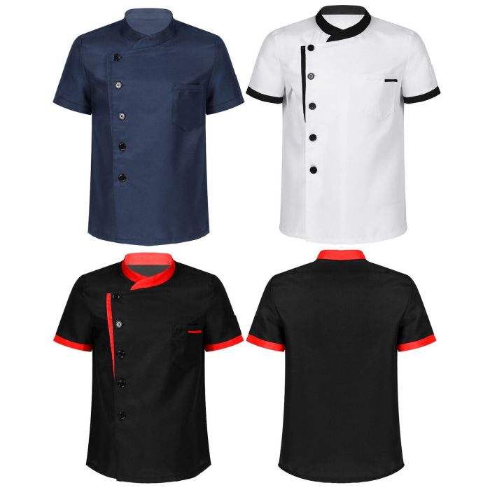 US ผู้ชายร้านอาหารครัวคอสเพลย์เครื่องแต่งกายชุดปุ่มเชฟทําอาหารเสื้อแจ็คเก็ต