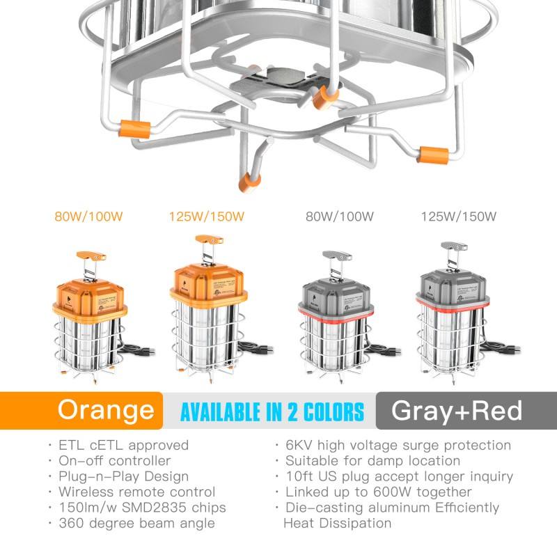 ไฟส่องสว่างสำหรับงานก่อสร้าง US STOCK 100W 150W พร้อมตะขอสำหรับซ่อมรถยนต์/ตรวจสอบ/โรงรถ/โรงงาน/เหตุฉุกเฉิน