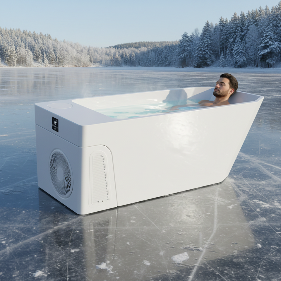 อ่างน้ำแข็งแบบออลอินวันพร้อมระบบควบคุมผ่าน WiFi สำหรับการจัดส่งในสหรัฐอเมริกา ทำจากอะคริลิกทนทาน พร้อมเครื่องทำความเย็นและระบบกรองโอโซน