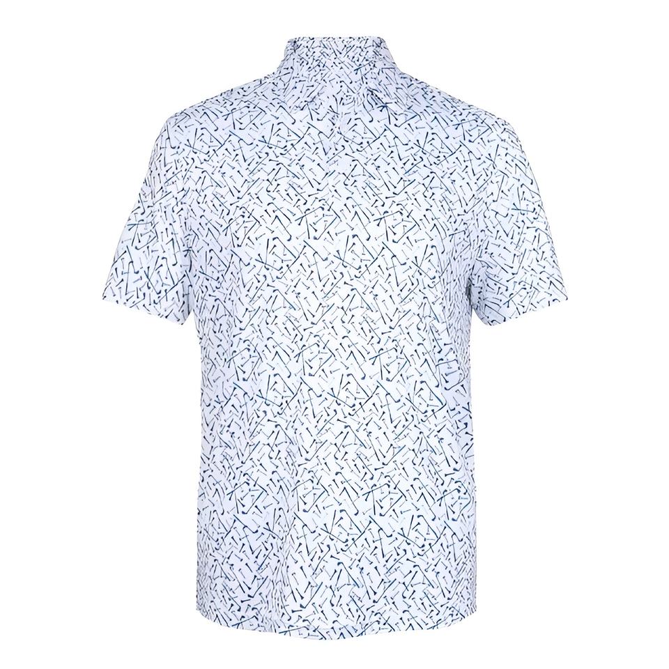 เสื้อโปโลกอล์ฟแขนสั้นสำหรับนักกอล์ฟเสื้อโปโลพิมพ์ซับลิเมชันทำจากโพลีเอสเตอร์ออกแบบได้ตามต้องการขนาดเรา