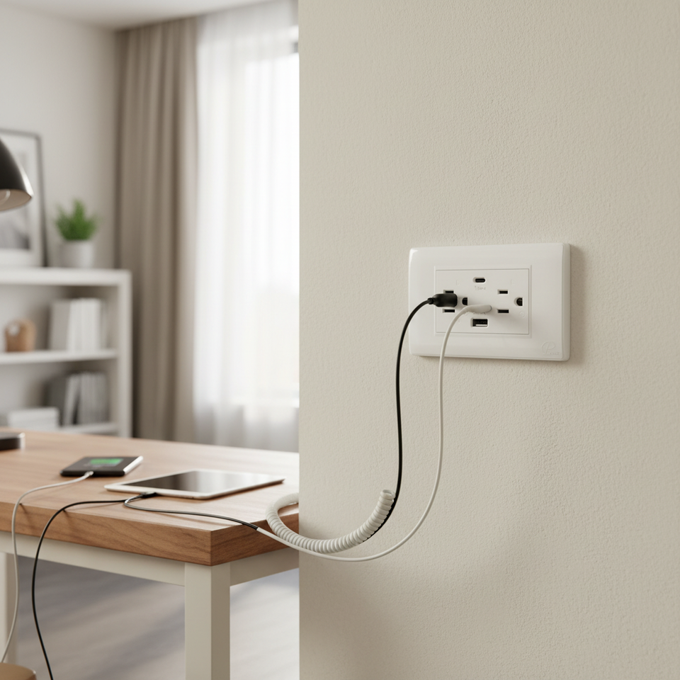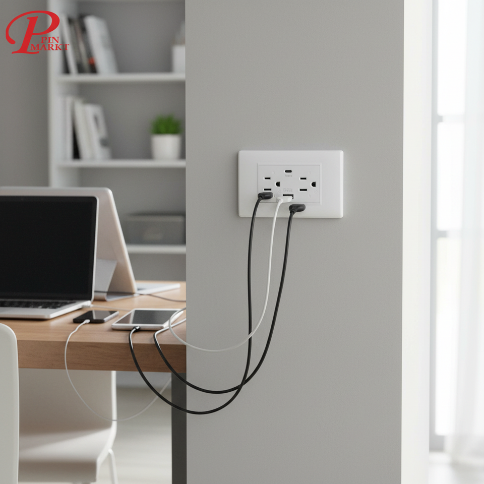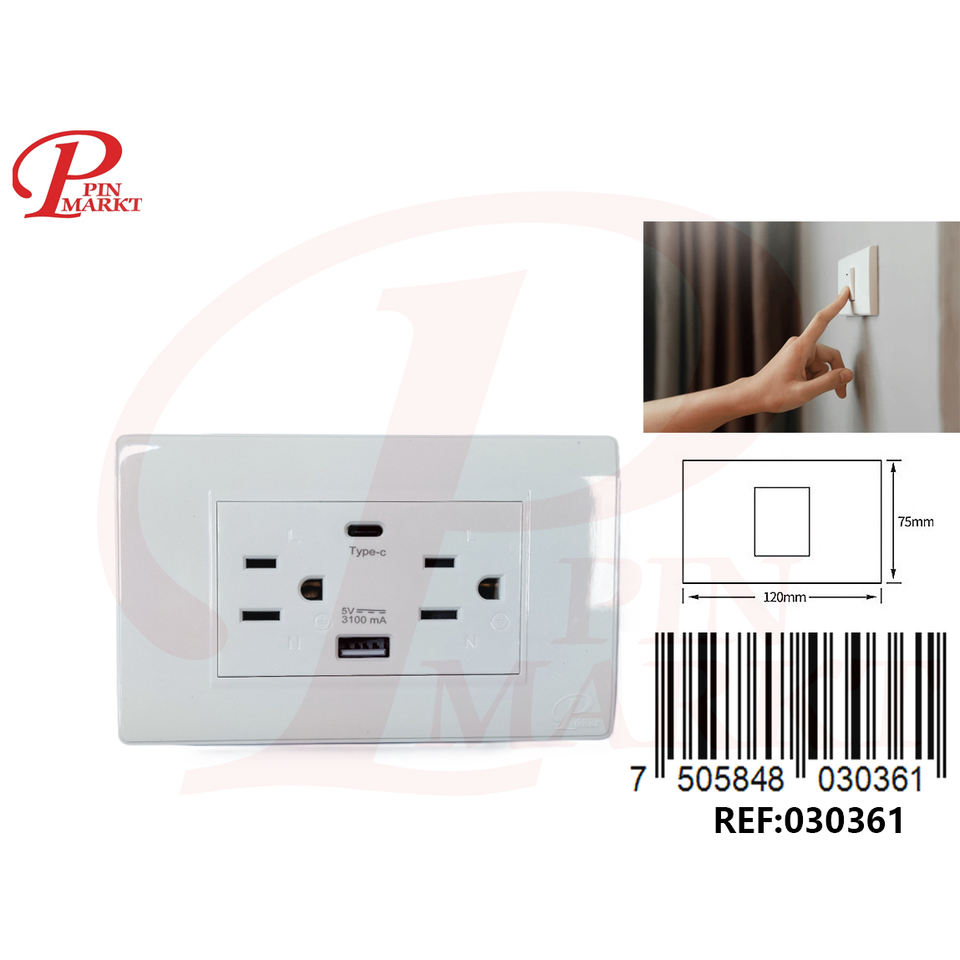ปลั๊กไฟแบบอเมริกัน 6 ขา USB Type-C สำหรับติดผนัง ใช้ในบ้าน/สำนักงาน ชาร์จไฟได้ ทนทาน รุ่น 03036
