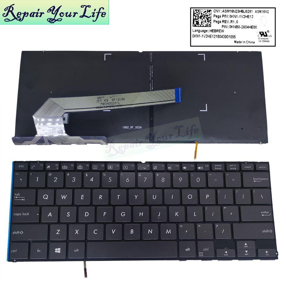 คีย์บอร์ดแล็ปท็อปเรืองแสงในสหราชอาณาจักรสำหรับ Asus Zenbook flip S UX370UA แป้นพิมพ์0KNB0-2604HE00 UX370UAF เปลี่ยนใหม่สีดำ/ สีฟ้า