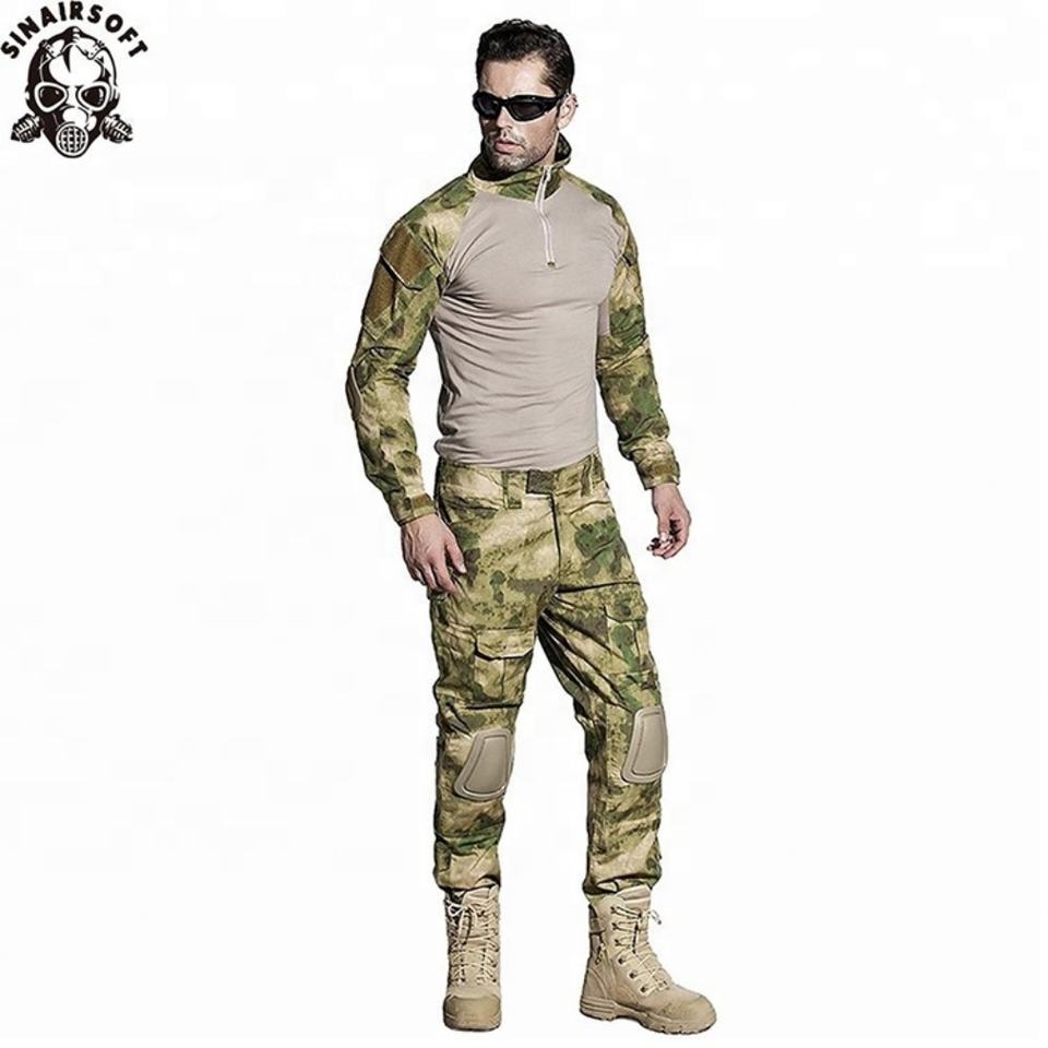 เสื้อเชิ้ตยูนิฟอร์มแบบอเมริกันพร้อมแผ่นรองเข่าสำหรับการต่อสู้ทางยุทธวิธี ชุดล่าสัตว์ลายพราง กางเกงลำลองลายพราง ชุดยูนิฟอร์มลายพราง