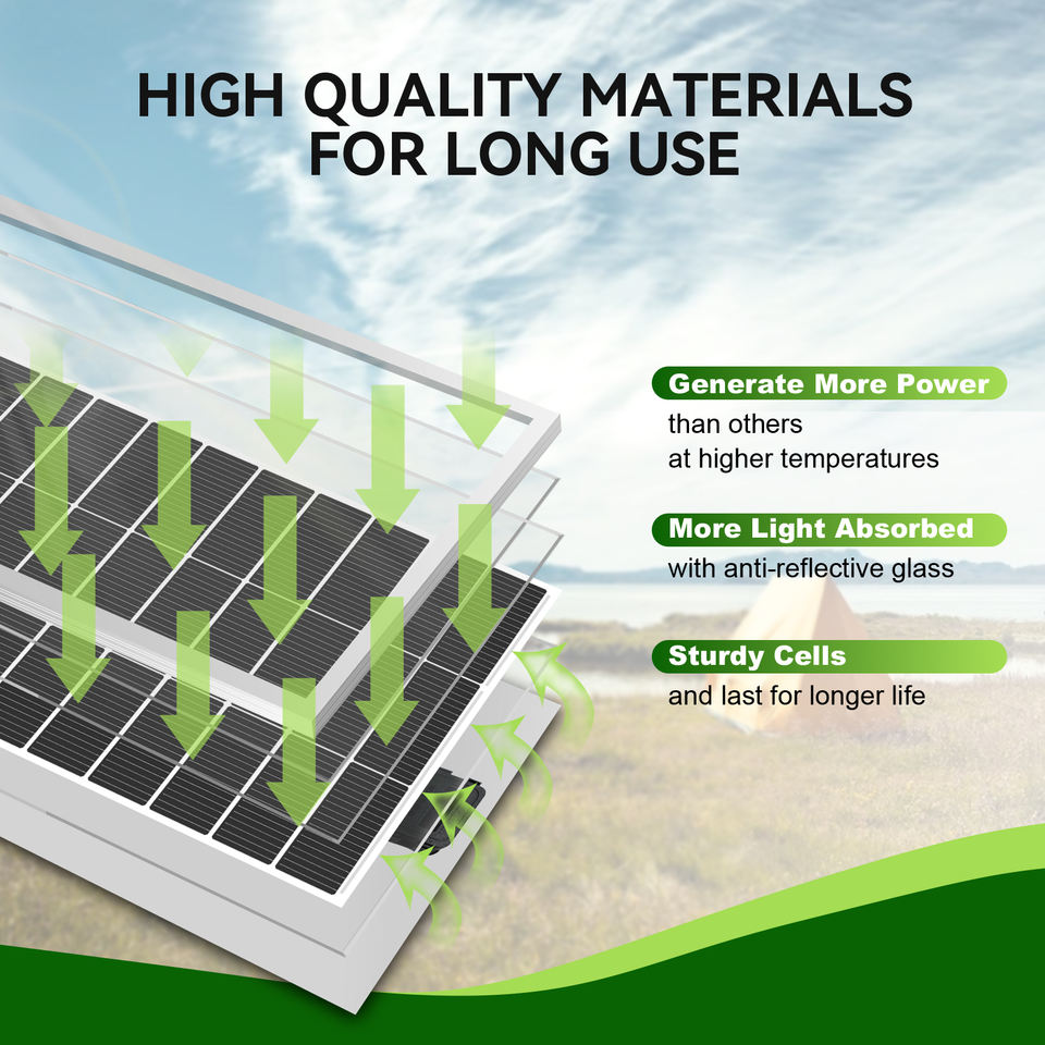 แผงโซลาร์เซลล์แบบแข็งชนิดโมโนคริสตัลไลน์ 200 วัตต์ ประสิทธิภาพ 22% สำหรับใช้งานกลางแจ้ง ขายส่งจากคลังสินค้าในสหรัฐอเมริกา