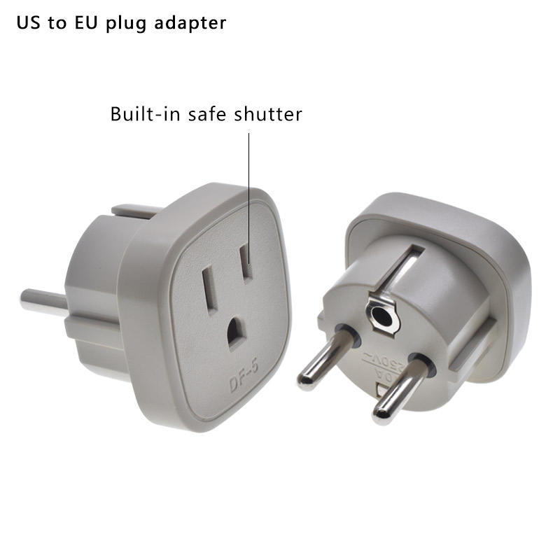 อะแดปเตอร์ปลั๊กอเมริกาจาก US TO EU Type-B 3 Pins TO Type-E SCHUKO round 2 Pins Converter สำหรับท่องเที่ยวยุโรปเกาหลีฝรั่งเศส