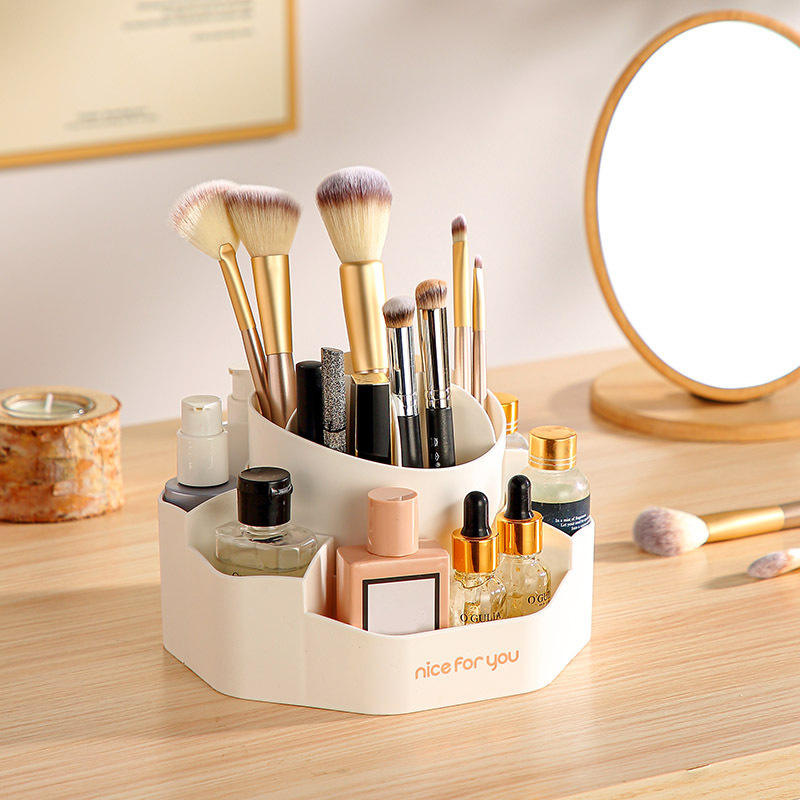 กล่องเก็บเครื่องสำอางพลาสติกหมุนได้ 360 องศาจากสหรัฐอเมริกา กล่องจัดระเบียบอเนกประสงค์สำหรับโต๊ะทำงาน ที่ใส่ดินสอและปากกาสำหรับเด็ก