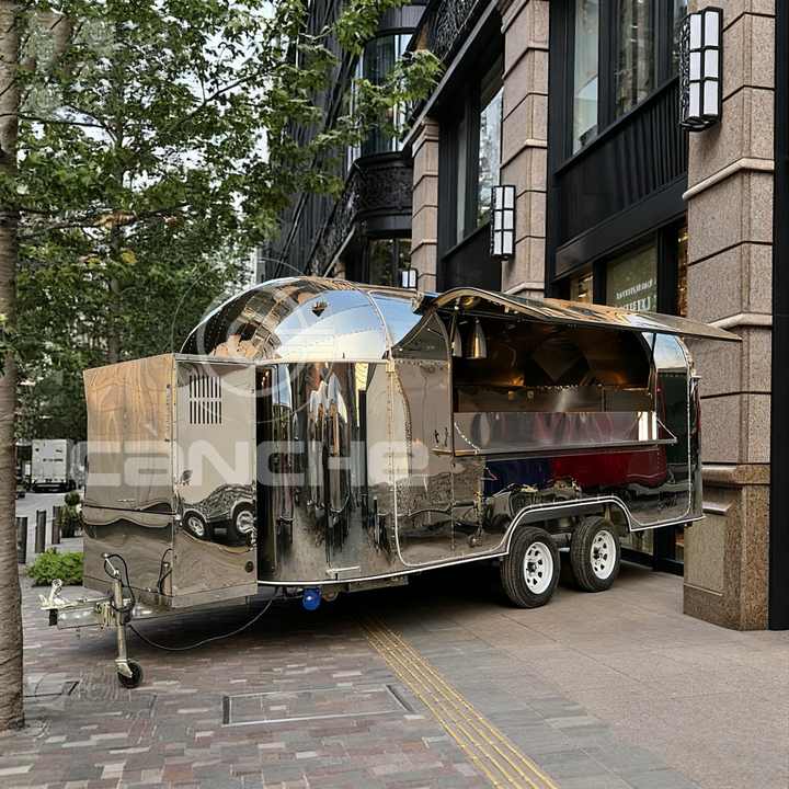 รถขายอาหารเคลื่อนที่คุณภาพดี ขายดีในสหรัฐอเมริกาและยุโรป รถขายอาหารเร็ว ขนาด 19 ฟุต พร้อมระบบสองเพลา