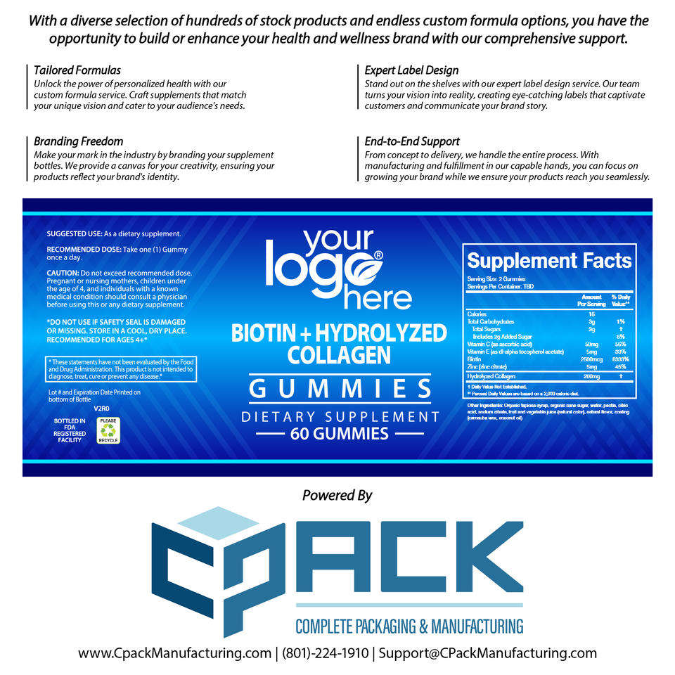 Product Name:Biotin + Hydrolyzed Collagen Gummies