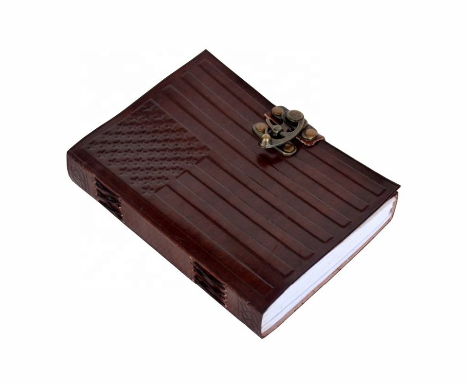 สมุดบันทึกสมุดโน๊ตหนังแท้ลายนูนรูปธงสหรัฐอเมริกาทำด้วยมือสีน้ำตาลลายนูนพร้อมทองเหลืองรูปตัวซีล็อกกระดาษเปล่าสีขาวปกแข็ง