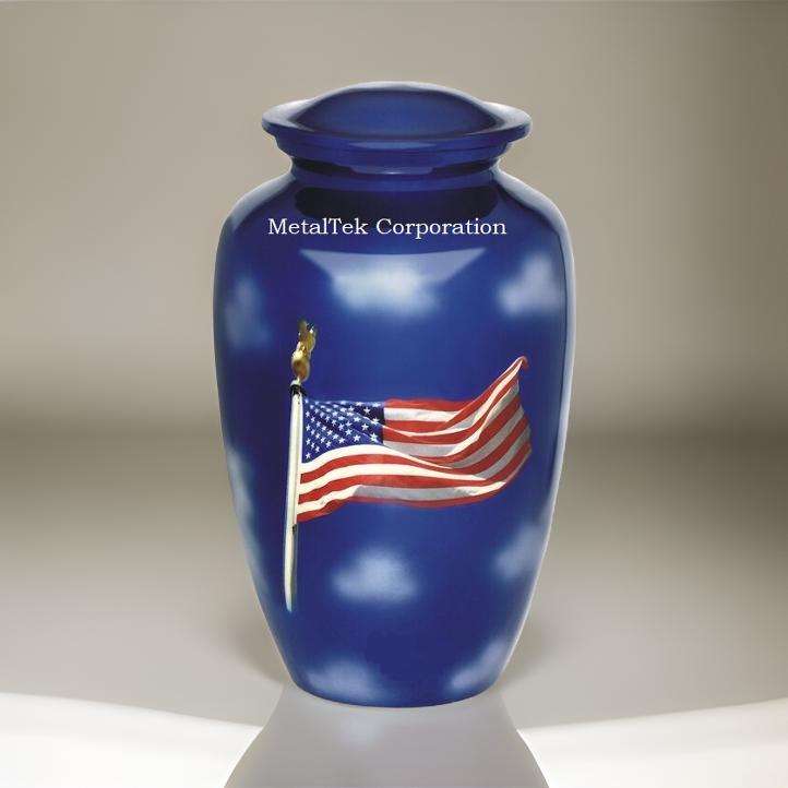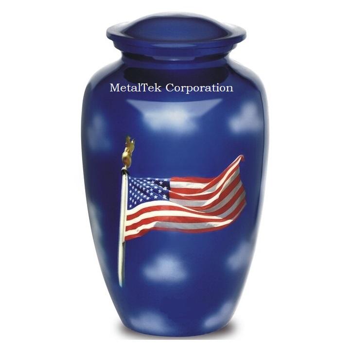 โกศใส่เถ้ากระดูกสำหรับผู้ใหญ่สไตล์อเมริกันพิมพ์ธงสหรัฐอเมริกาสำหรับใส่เถ้ากระดูกตกแต่งแบบทหารผ่านศึกแบบคลาสสิก