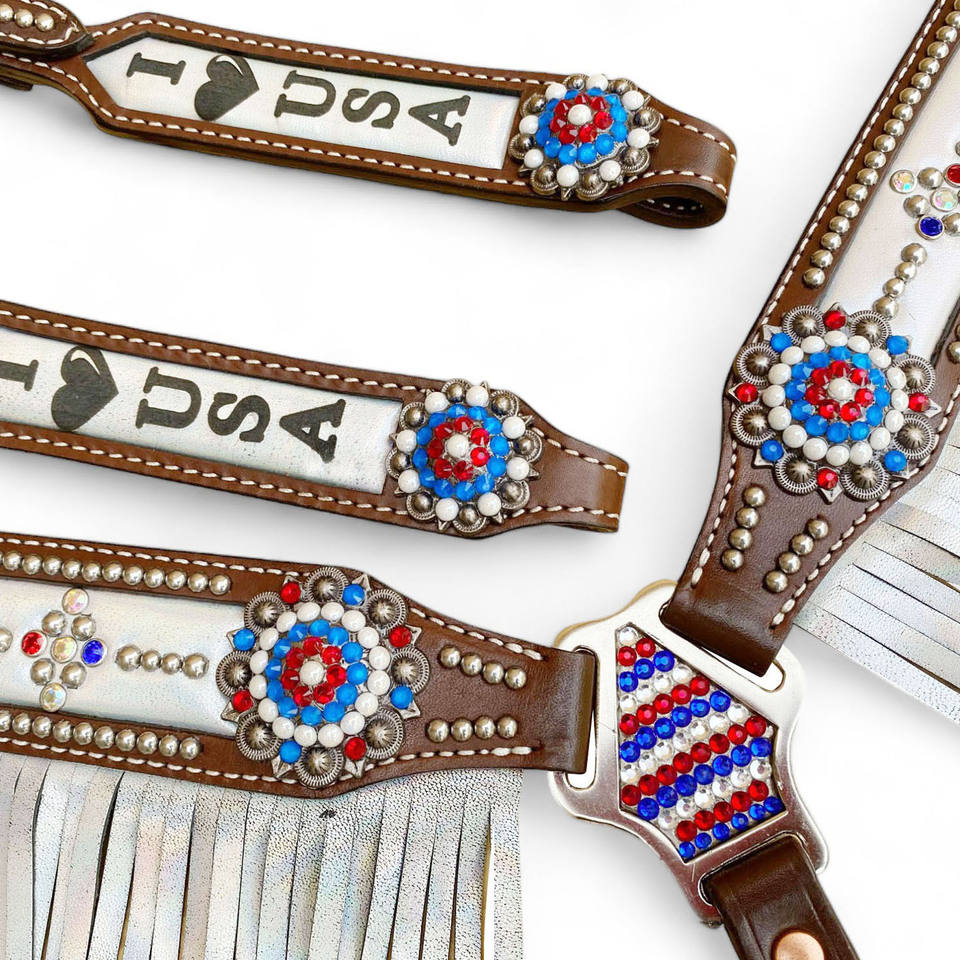 ชุดอุปกรณ์สวมศีรษะและแผ่นเกราะหน้าอกพิมพ์ลายจากอเมริกาลายม้าตะวันตก