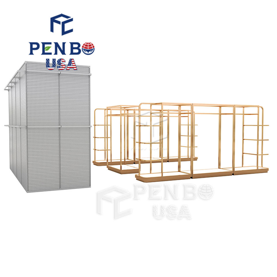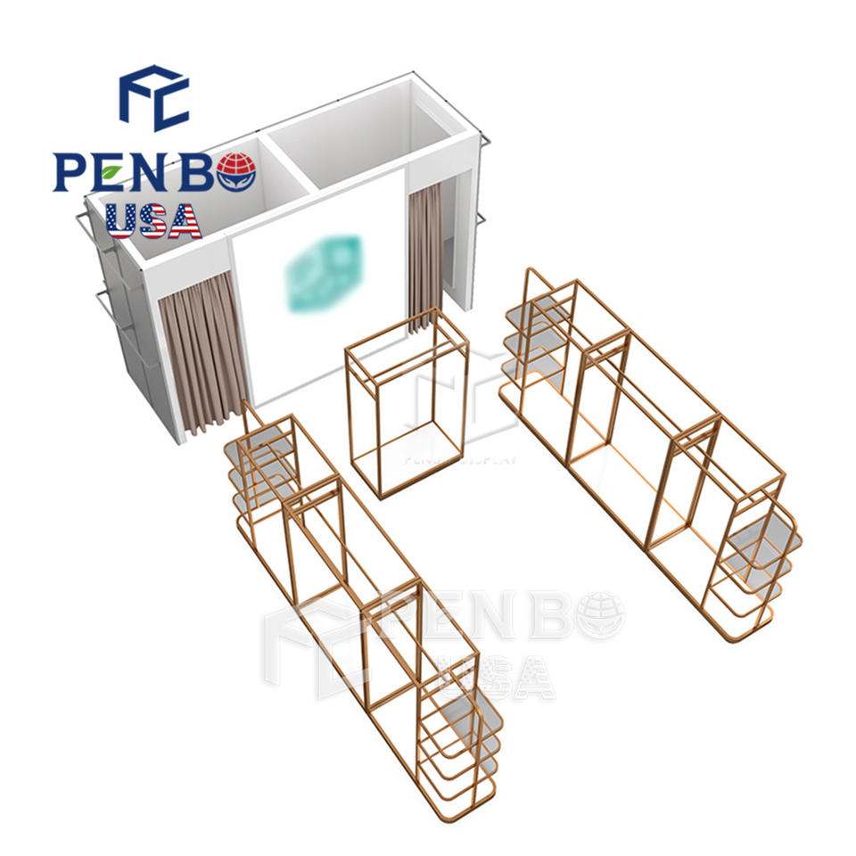 ชั้นวางเสื้อผ้าสำหรับร้านขายเสื้อผ้าที่ทันสมัยที่วางเสื้อผ้าสีทองสั่งทำตามแบบในท้องถิ่นสหรัฐอเมริกา