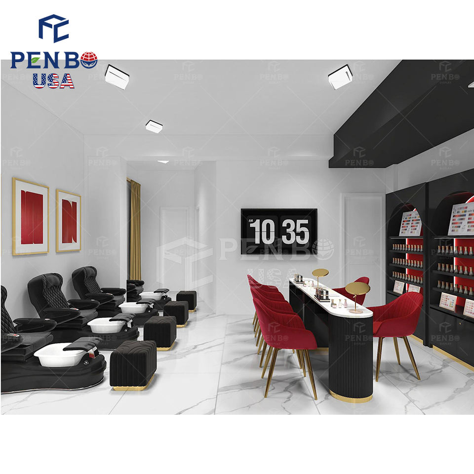 ตู้ทำเล็บเสริมสวยที่ปรับแต่งได้สำหรับร้านทำจากไม้เฟอร์นิเจอร์ร้านทำสปาหรูหราในท้องถิ่น USA