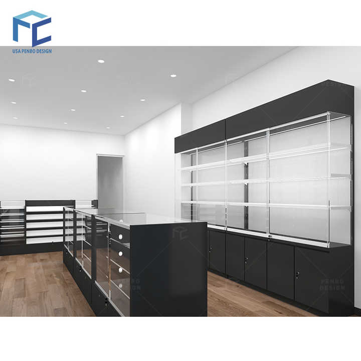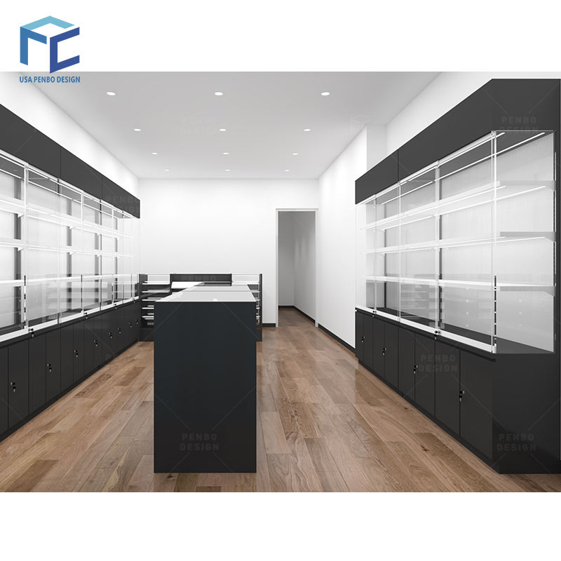 PENBO USA LOCAL Hot Sale Tempered Glass Tobacco Display Counter Customized Glass Cigar Shop Showcase ODM OEM Service for Smoke