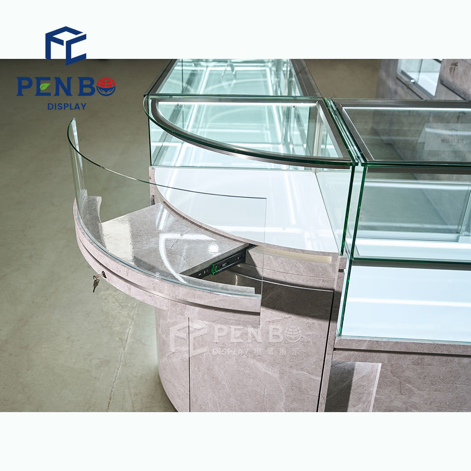 ตู้โชว์เครื่องประดับแบบกลมดีไซน์ร้านเครื่องประดับอัญมณีสีทองเงินทันสมัยจากสหรัฐอเมริกา