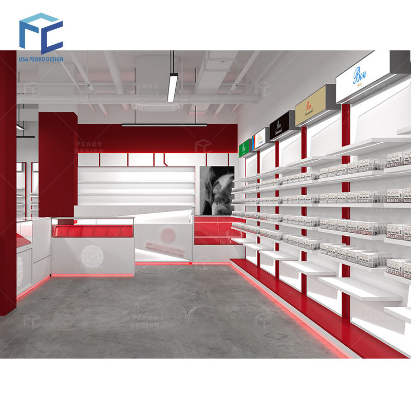 ตู้โชว์ร้านขายยาสูบ PENBO ดีไซน์ทันสมัย หรูหรา พร้อมบริการ ODM ปรับแต่งสีและขนาดได้ สำหรับร้านค้าปลีก