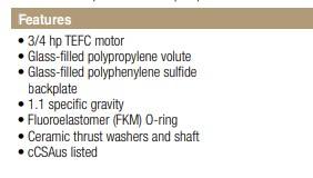 Impeller:Glass-filled polypropylene w/ carbon bushing