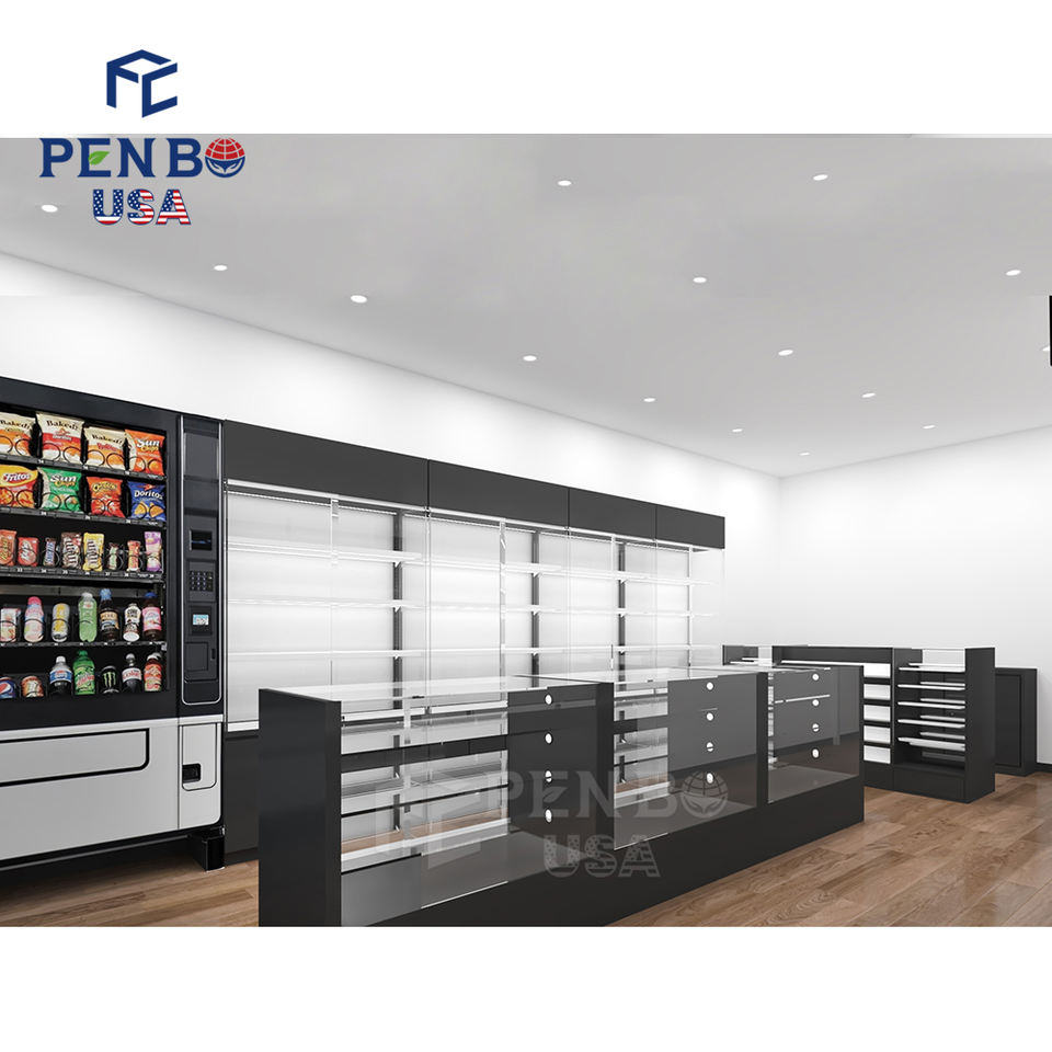 ตู้โชว์สินค้าทำจากแก้วสีดำพร้อมลิ้นชักสำหรับจัดแสดงยาสูบอุปกรณ์ตกแต่งร้านทำควันจากผู้จำหน่ายในท้องถิ่นจากสหรัฐอเมริกา