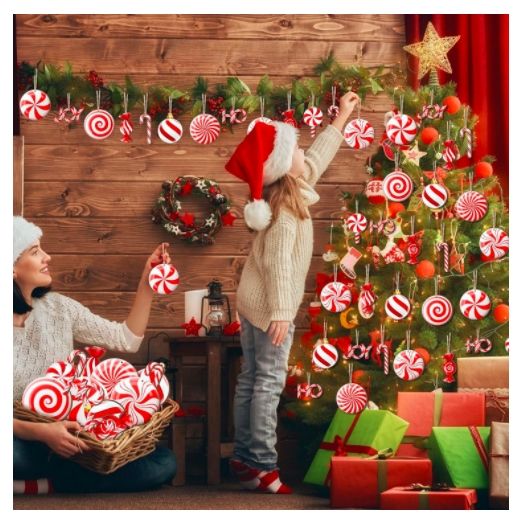 ชุดเครื่องประดับตกแต่งต้นคริสต์มาส USA Mairun รูปแท่งลูกอมแก้ว 24 ชิ้น สำหรับแขวนตกแต่งบ้านในวันปีใหม่ สีเดียว