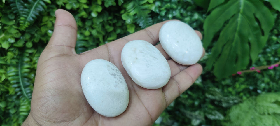 หินสกอเลไซต์สีขาวขายส่ง หินปาล์มขัดเรียบ สำหรับเสริมฮวงจุ้ย คริสตัลบำบัด พลังงานแห่งความรักบริสุทธิ์ คุณภาพสูง สำหรับการปฏิบัติทางจิตวิญญาณ