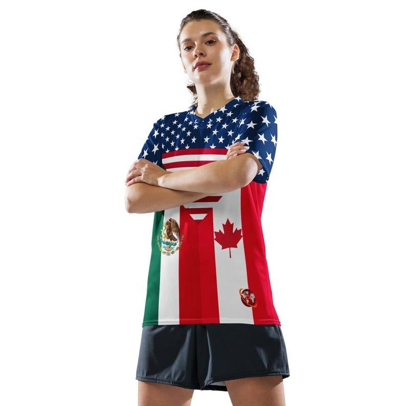เสื้อเจอร์ซีย์ฟุตบอลธีมแคนาดาเครื่องแบบทีมออกแบบตามสั่งสำหรับแฟนบอลสหรัฐอเมริกา