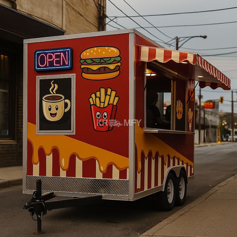 รถขายอาหารเคลื่อนที่หลังคาทรงสี่เหลี่ยมมาตรฐานอเมริกา รถขายกาแฟ รถขายเบเกอรี่ รถขายไอศกรีม