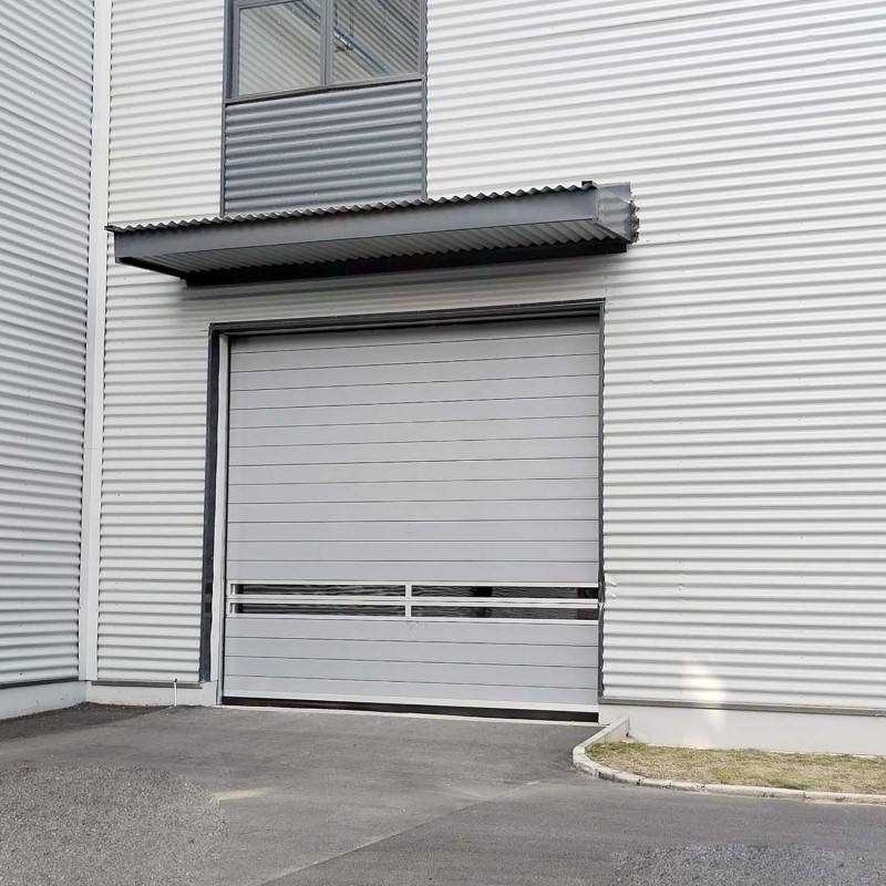 ประตูม้วนอลูมิเนียมแบบเจาะรูสำหรับโรงรถที่อยู่อาศัยแบบมีรูพรุนแผงควบคุมฉุกเฉิน