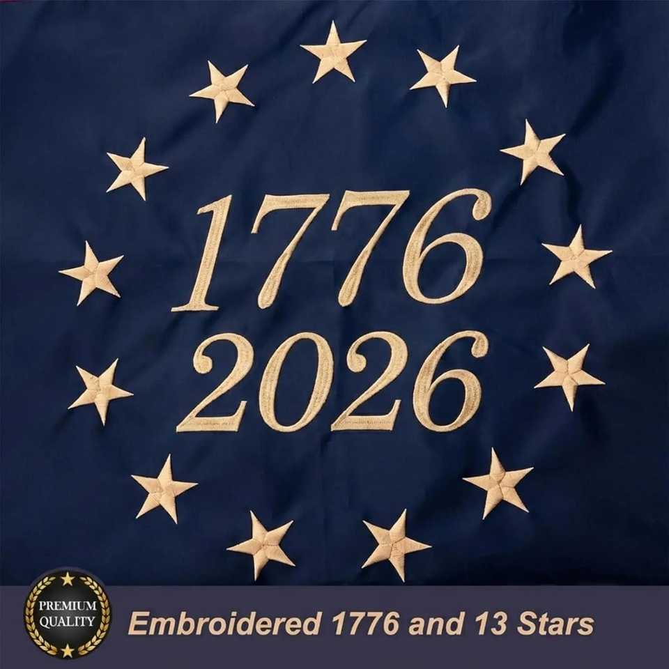 ธงชาติสหรัฐอเมริกา USA TOP FLAGSINC ผ้าฝ้ายแขวนได้ ทนทาน ปี 1776-2026 ธงเบ็ตซี รอสส์ ย้อมสีชา ขนาด 3x5 ฟุต สไตล์วินเทจอเมริกัน 13 ดาว ลายอาณาจักรโบราณ พร้อมฐานพลาสติก