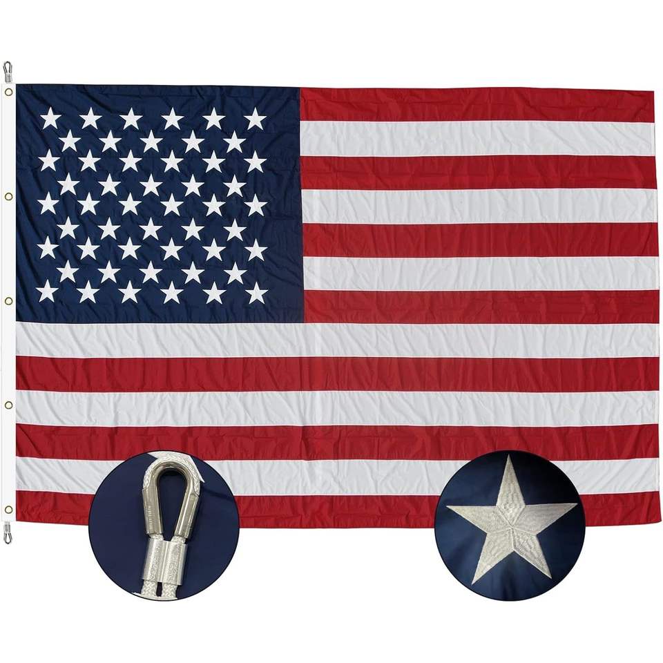 ธงชาติอเมริกา USA TOP FLAGSINC รุ่น Mega Luxury ขนาด 15x25 ฟุต สำหรับใช้งานกลางแจ้ง ผลิตจากไนลอนคุณภาพสูง ปักดาวอย่างดี พร้อมเชือกแขวน ตะเข็บเย็บสองชั้น