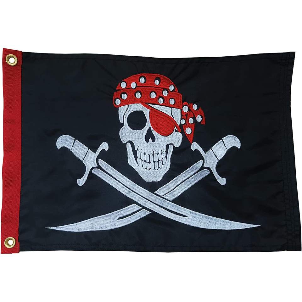 ธงชาติสหรัฐอเมริกา แพ็ค 2 ผ้าพันคอสีแดง หมวกโจรสลัด ธงเรือ 12x18 นิ้ว ปักลายโจลลี่โรเจอร์ ธงเรือยอชท์ 2 ชิ้น ทำจากทองเหลือง