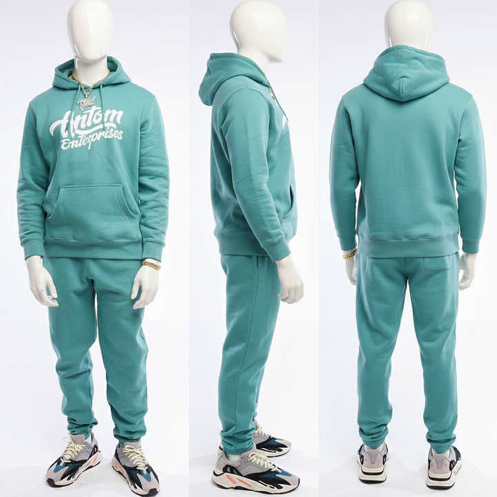ชุดวอร์มแบบมีฮู้ดสองชิ้น สตรีทแวร์ สีพื้น ยูนิเซ็กซ์ ผลิตในสหรัฐอเมริกา ขนาดมาตรฐาน คุณภาพสูง โลโก้สั่งทำได้ ผ้าหนา เป็นมิตรกับสิ่งแวดล้อม