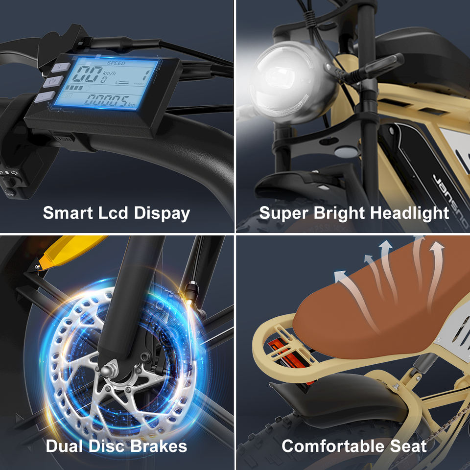 จักรยานไฟฟ้า1000W ระบบกันสะเทือนเต็มรูปแบบ48V 34Ah คู่แบตเตอรี่ลิเธียมขนาด20นิ้วดิสก์เบรกล้อใหญ่ eBike 2023