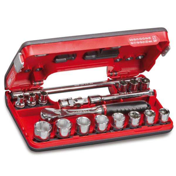 Usag-U06090012หลากหลายประเภทมีซ็อกเก็ตแบบคู่และวงล้อขนาด3/8นิ้วในกล่องวัสดุ (18ชิ้น) ชุดวงล้อและซ็อกเก็ต