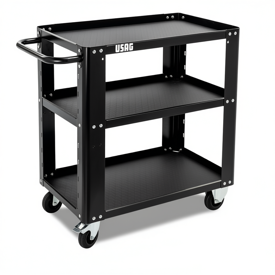 รถเข็นอเนกประสงค์ USAG 3 ชั้น สีดำ โครงเหล็ก สำหรับคลังสินค้าและโลจิสติกส์