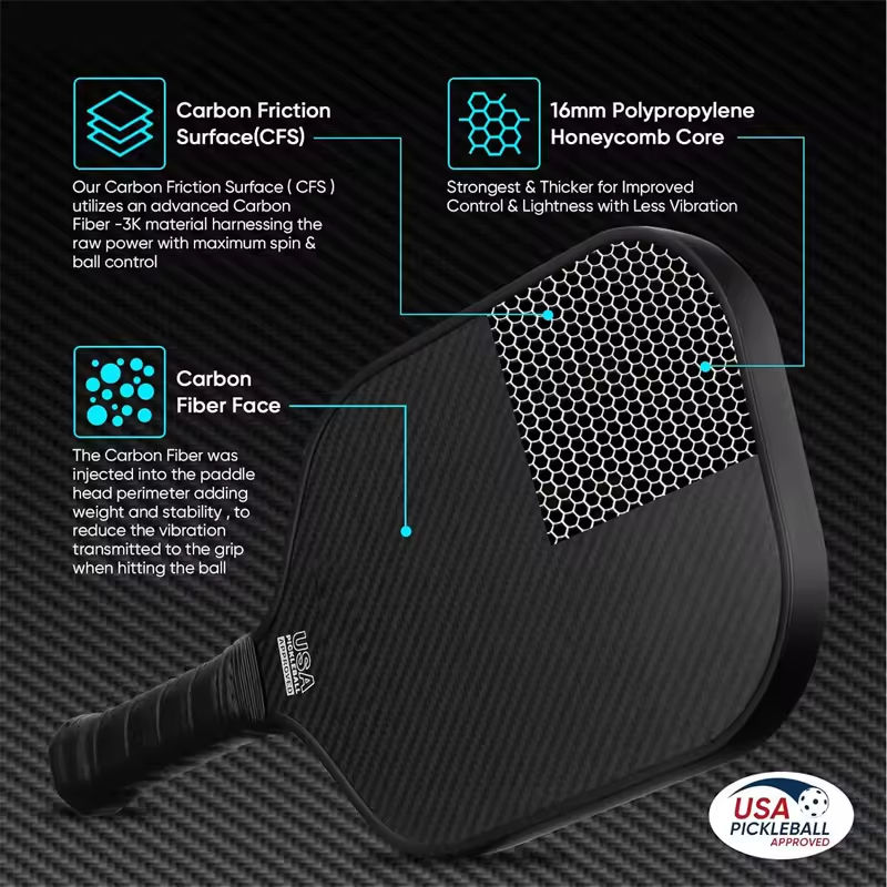 USAPA Approved 16mm Raw T700 Carbon Surface Foam-Core Gen2 / Gen3 Pickleball Paddle Custom Logo Lightweight Power & Spin