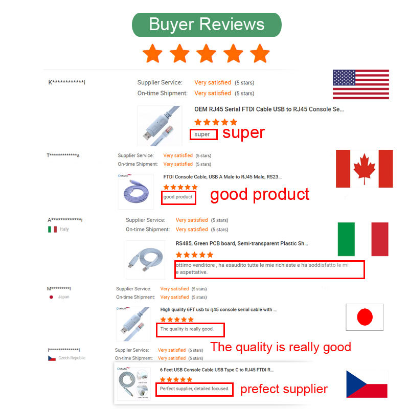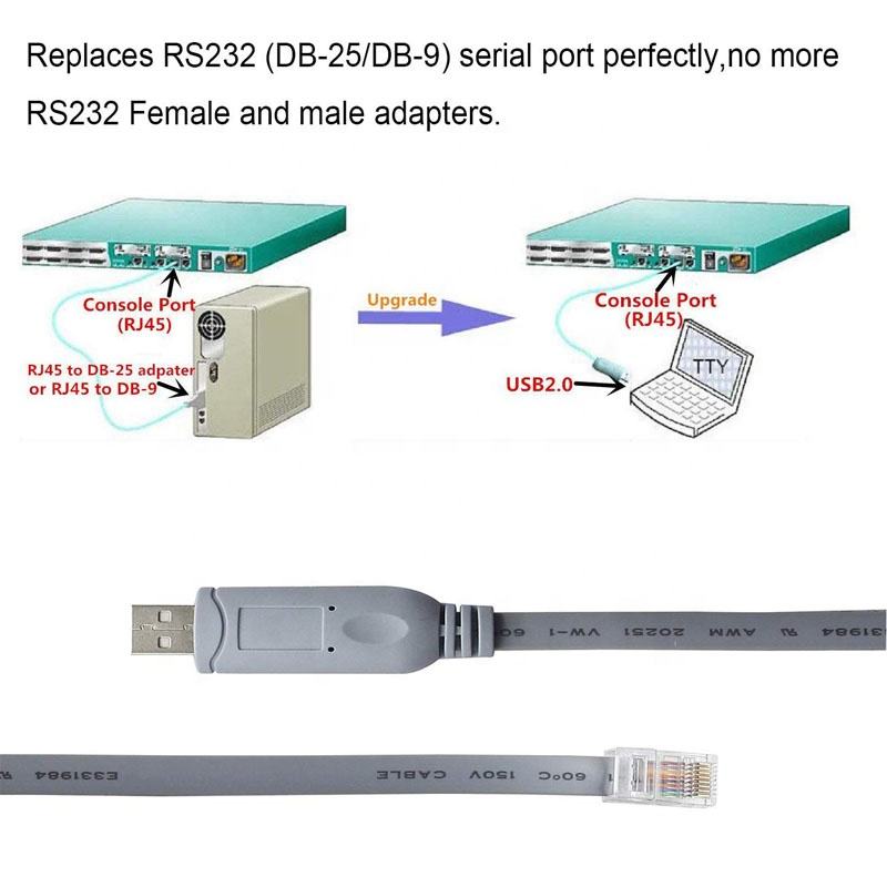 สายคอนโซล2.0 USB พร้อมชิป FTDI สายเคเบิลคอนโซล RJ45